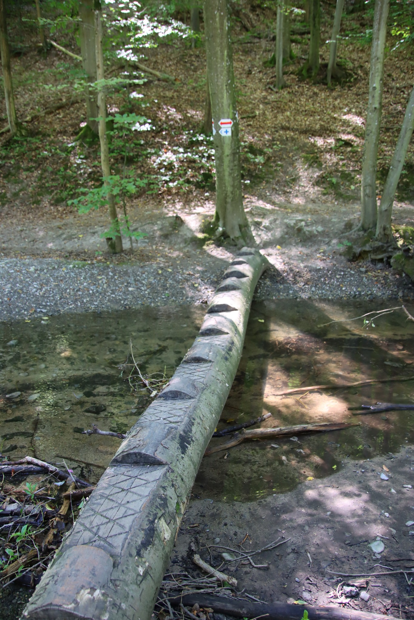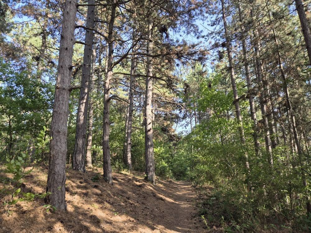 A fiatalosban balra tartunk, majd a szinttartó úton vastag, kidőlt fatörzsekkel találkozunk. A befűrészelt lépéshelyek segítenek, de a meredek hegyoldallal kombinálva a nagyon veszélyes környezet miatt ÓVATOSAN közlekedjen mindenki.